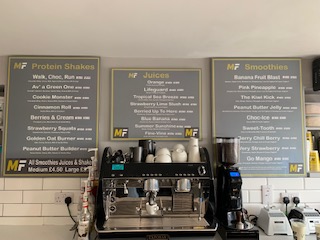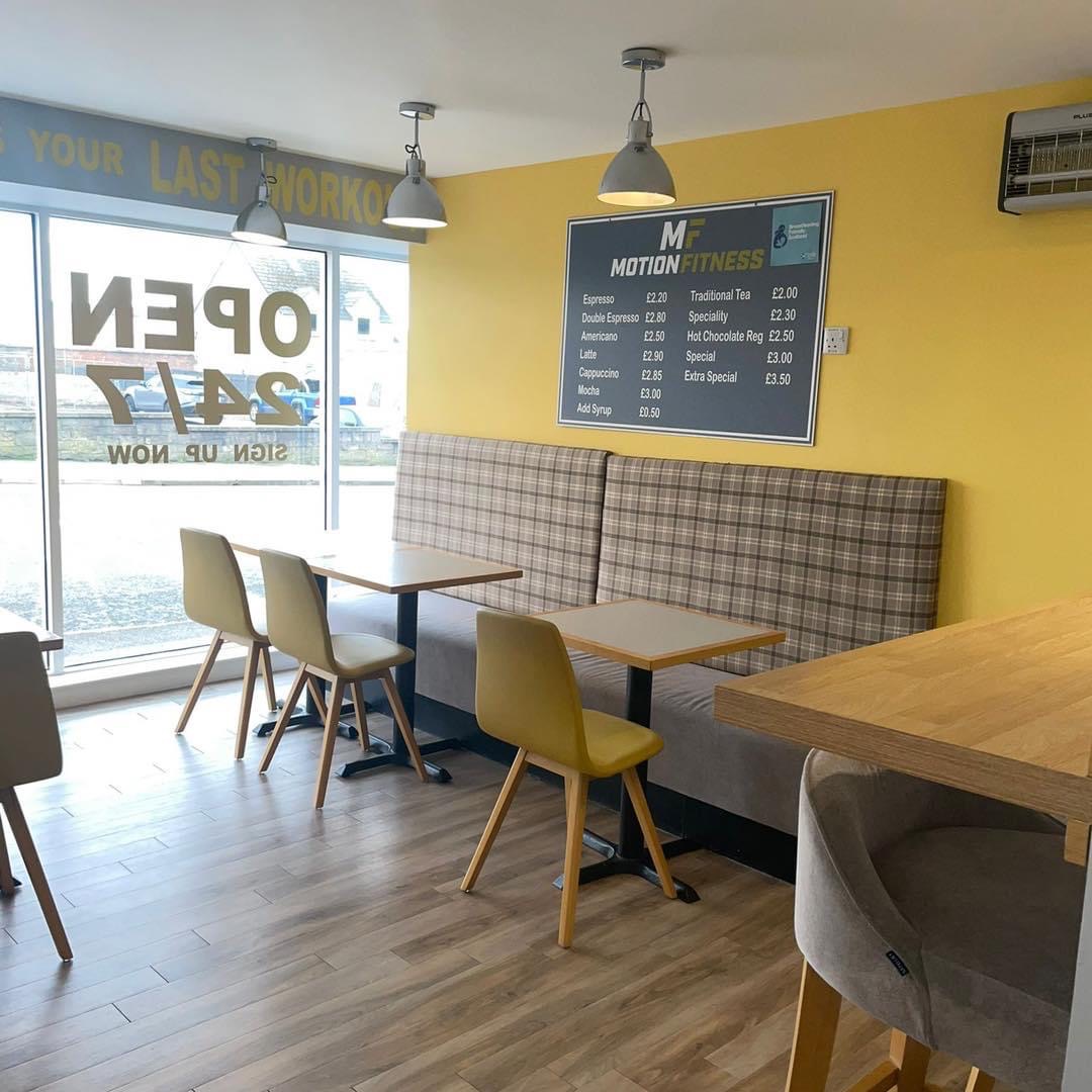 Motion Fitness Juice Bar is situated on Buckie High Street and is open to the public – you don’t need to be a member to use the Juice Bar. We have a sit in or take away option on all products we sell at the juice bar, so whether you want to grab a quick snack on the go or sit and enjoy a lovely coffee we have you covered.